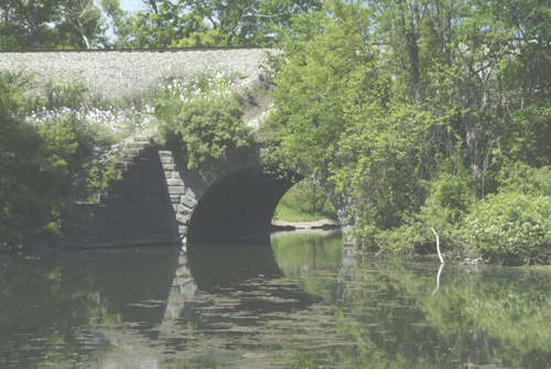 Aview of the Milford Huron river Railroad bridge. This stone arch bridge has been in service since the 1890’s |